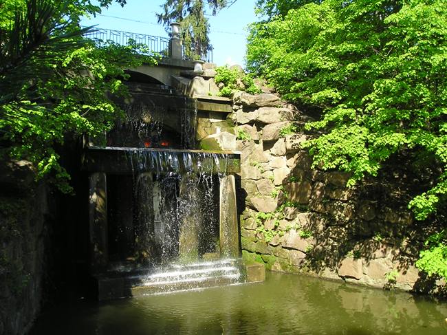 Мабуть, найвідомішою визначною пам’яткою парку є фонтан “Змія”. Дивно, але 18-метровий стовп води, який злітає вгору з пащі кам’яної рептилії, утворюється без використання насосів, а за рахунок тиску, що створюється різницею в рівнях води у двох озерах.